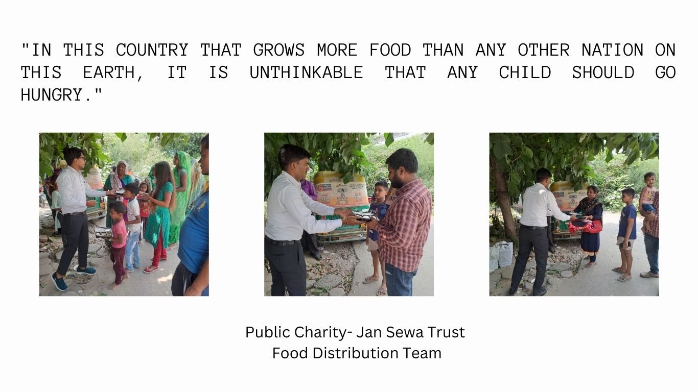 - The trust distributes food, medicines, and other essential items of daily use free of cost to the poor people and needy persons at General hospitals, Railway stations, and other many public places.